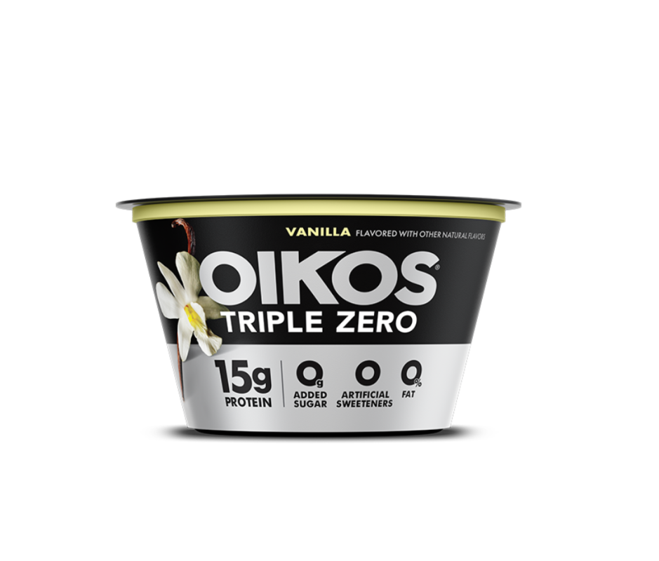 Oikos Triple Zero This yogurt is ideal for weight management due to having zero grams of fat, only 7 grams of carbohydrates, and no added sugars. Each portion of Oikos contains less than 100 calories. Additionally, every serving provides 15 grams of protein, aiding in satiety throughout the day. It comes in nine enticing varieties ranging from traditional tastes such as Vanilla and Strawberry to more decadent choices including Salted Caramel and Lemon Tart, ensuring there's something appealing for everybody. Furthermore, it avoids artificial additives, using natural flavors and vegetable juices instead for coloring, positioning itself as a premium choice for consumers favoring entirely natural items.